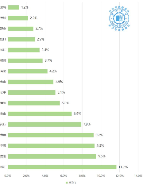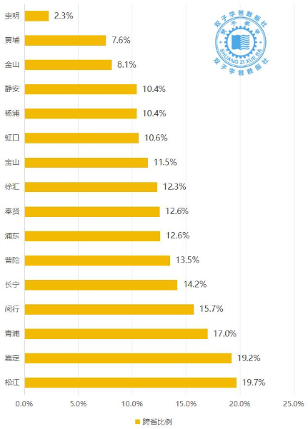 数据显示,上海登记结婚的数据中,跨省婚姻比例最高的是松江区,排名第二的是嘉定区,排名第三的是青浦区,排名第四的是闵行区,排名第五的是长宁区。