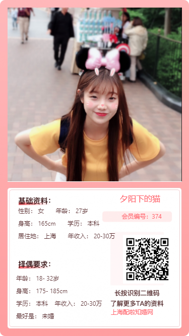 期待遇到三观契合、成熟有担当的你,在上海这座城市,一起经营温暖踏实的小日子~