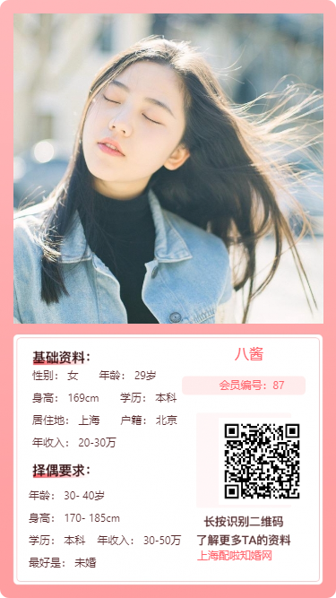 如果你也在上海,年龄相仿,性格稳重,有上进心,想认识一下这位女生,可以后台留言,简单介绍一下自己,会帮忙转达。